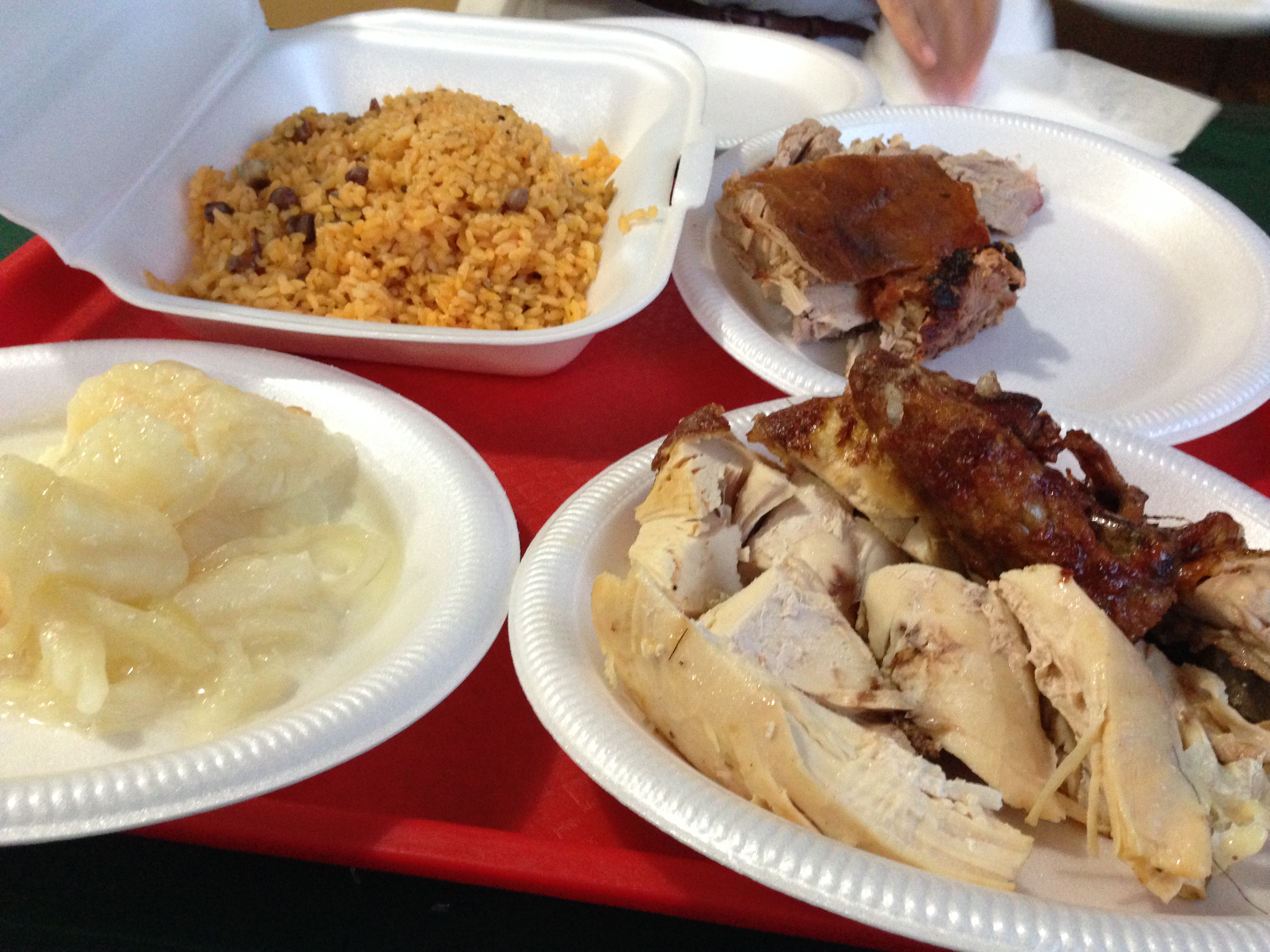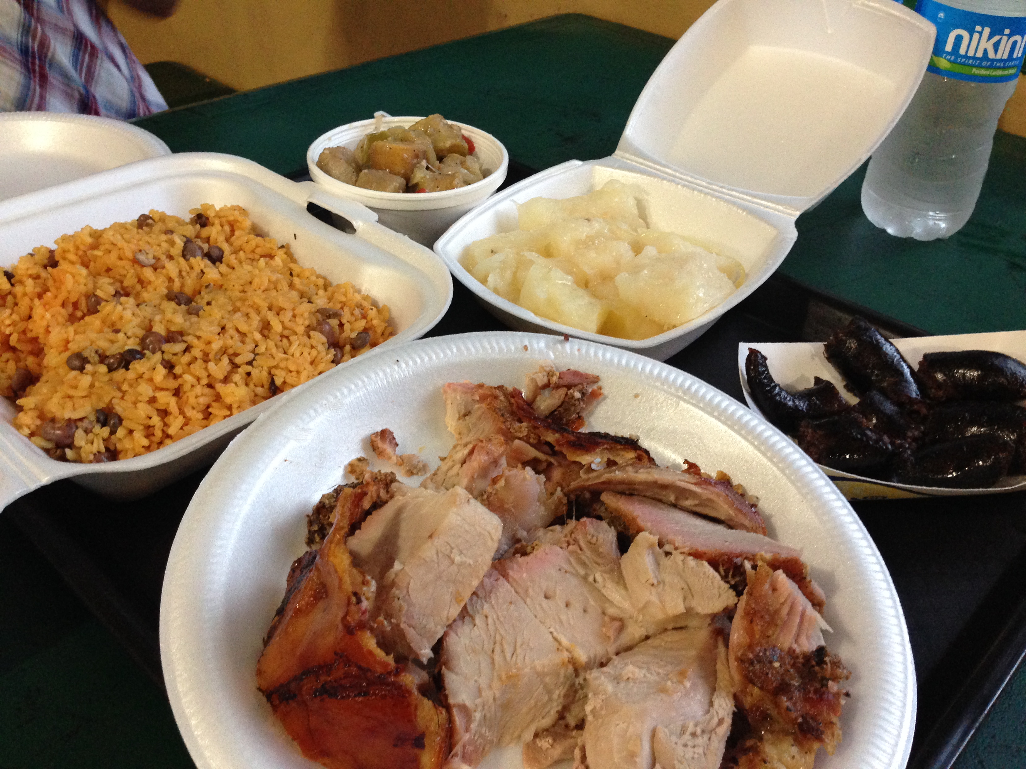 It was a beautiful day in the island in spite of the rain. From what we’ve experienced, rain does not stop the party here. Our friends and tour guides, Jossie & Juan, would tell us that we should not leave Puerto Rico without visiting the Lechoneras in Guavate and Sunday evening turned out to be our lucky day. It was about an hour drive through the city and into what looked like the rain forrest with hills on a curvy and narrow road. Early on, you start noticing kiosk after kiosk on both sides of the road claiming to serve the best Lechon (Roasted Whole Pig) in town. The scene was beautiful and the Anthony Bourdain in us was awakened.